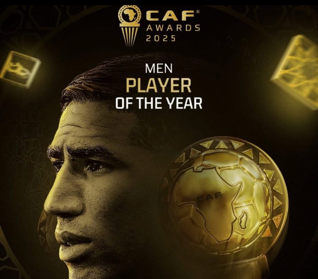 Achraf Hakimi foi coroado como o novo vencedor da Bola de Ouro Africana nos CAF Awards, numa cerimónia marcada por emoção e reconhecimento ao talento africano. O internacional marroquino, atualmente no Paris Saint-Germain, destacou-se pela sua regularidade, liderança em campo e impacto decisivo em competições de alto nível, especialmente na Liga dos Campeões, onde protagonizou algumas das melhores exibições da temporada.