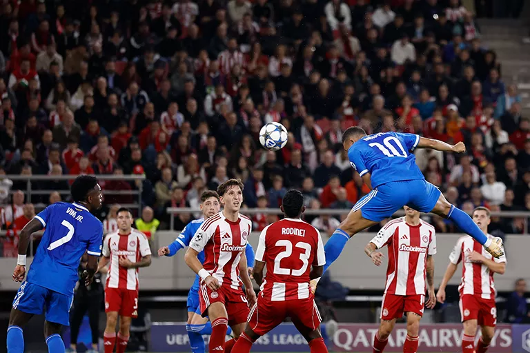 Mesmo assim, antes do intervalo, o Olympiacos reagiu com bolas aéreas e obrigou Lunin a impedir o golo de El Kaabi com uma defesa instintiva nos acréscimos.