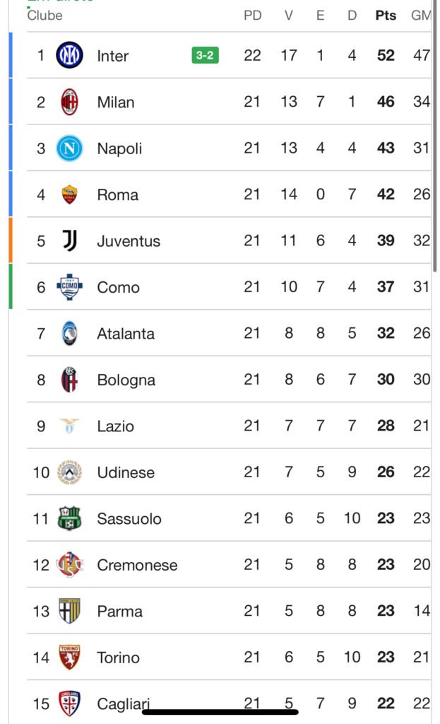 Os três jogos desta jornada da Serie A representam bem o equilíbrio do futebol italiano. Não há partidas simples, e o peso tático, emocional e estratégico cresce a cada rodada. Equipas grandes entram pressionadas a confirmar favoritismo, enquanto clubes de menor expressão jogam com urgência e espírito de final.
